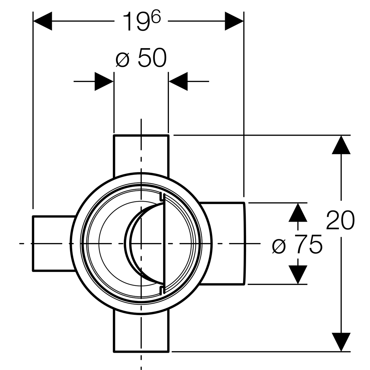 Три возможности подсоединения из ПНД, ø 50 мм
