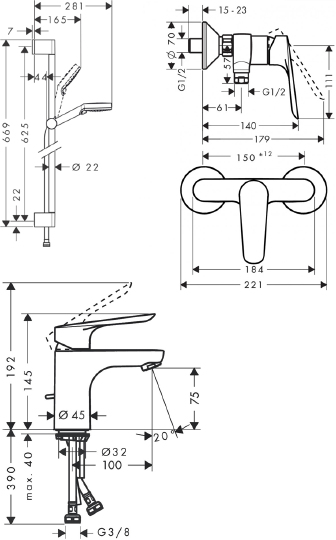 SetLogisE70B Набор Душевой комплект Hansgrohe SET Logis E 70 (b)
