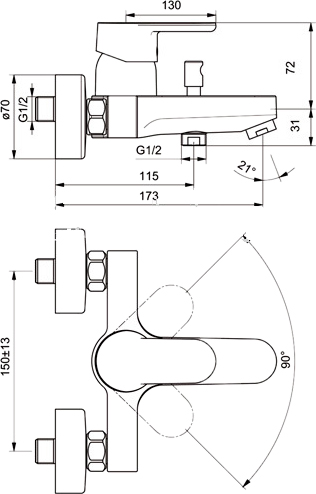 для ванны/душа с длинным изливом