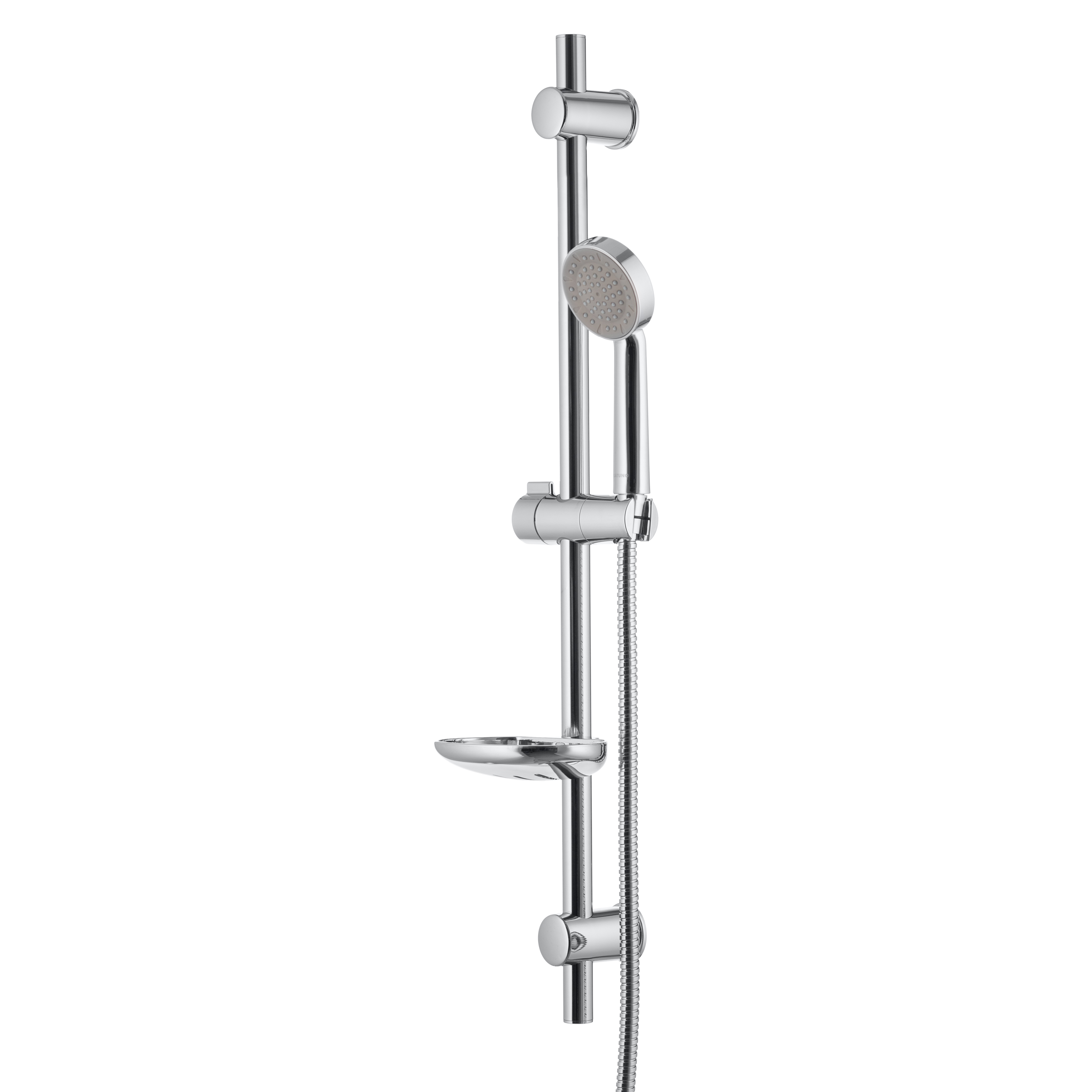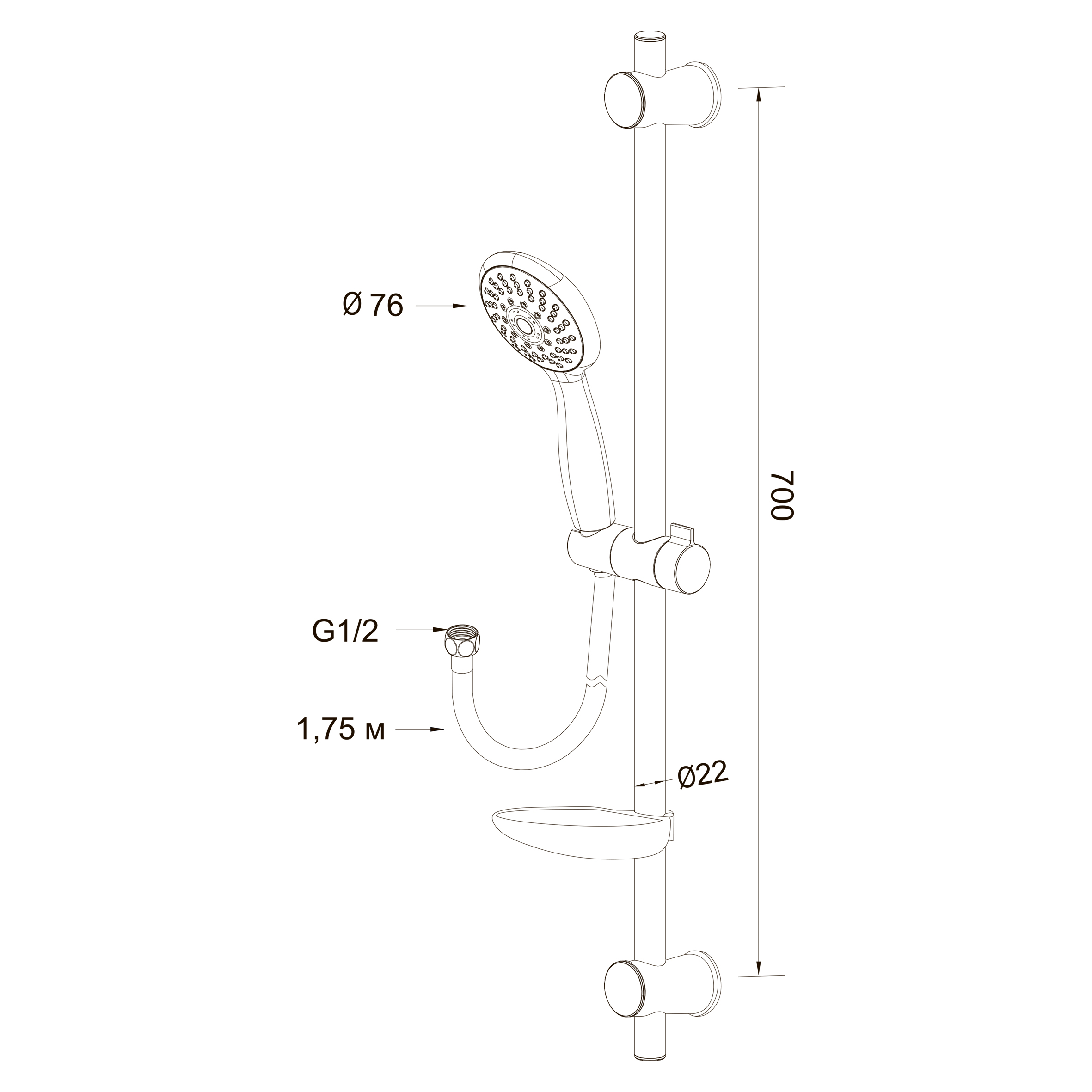 Российская торговая марка Pura Latuno это - смесители и душевые системы, разработанные согласно всем требованиям российских эксплуатационных условий. Душевой комплект: лейка однорежимная 76 мм с самоочищающимися форсунками, стальная штанга 700 мм, шланг металлический 1,75 м, мыльница и держатель из хромированного ABS-пластика.