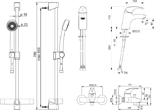 душевая лейка, душевая штанга, настенный держатель, смеситель, шланг для душа