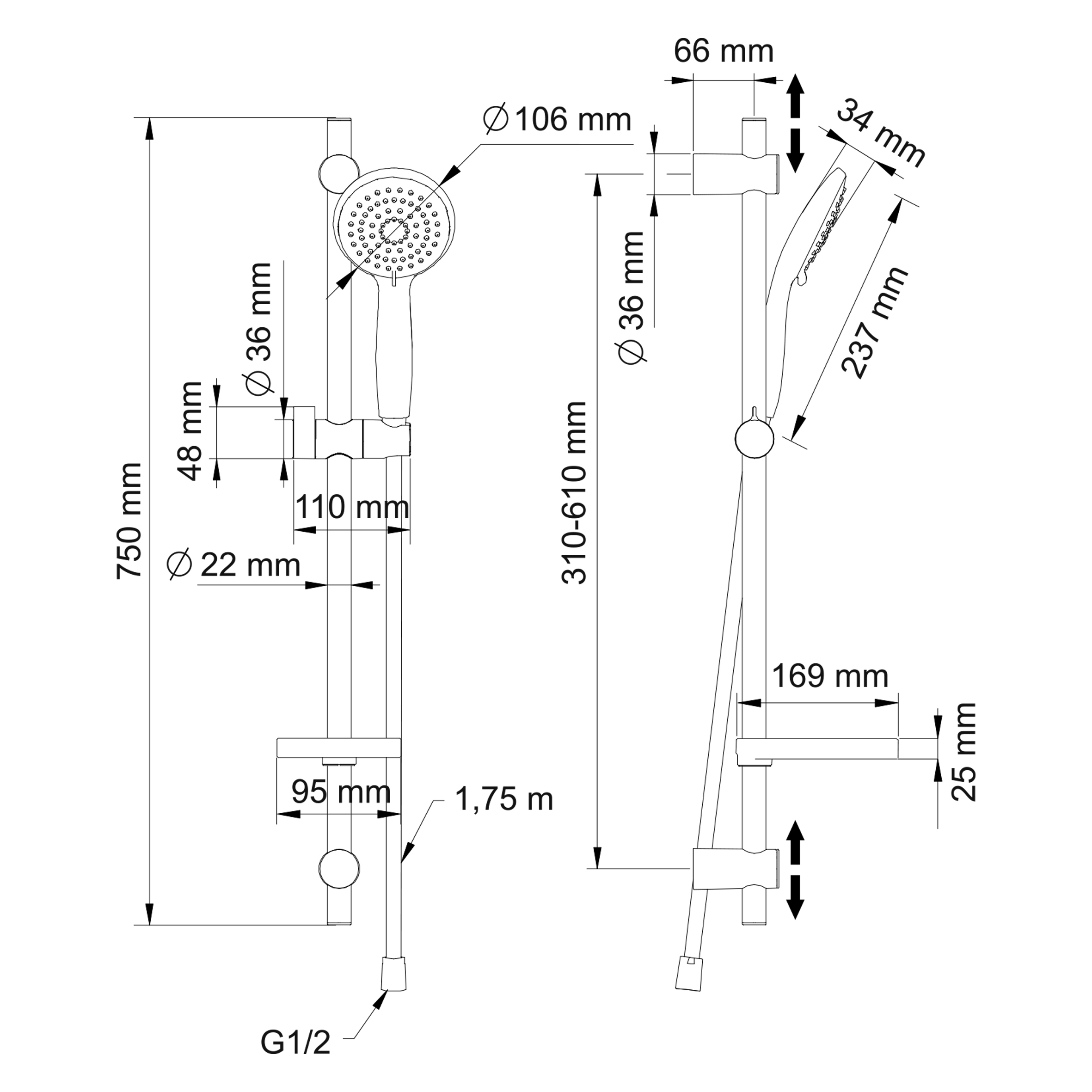 - шланг PVC с металлической структурой и системой против скручивания шланга;