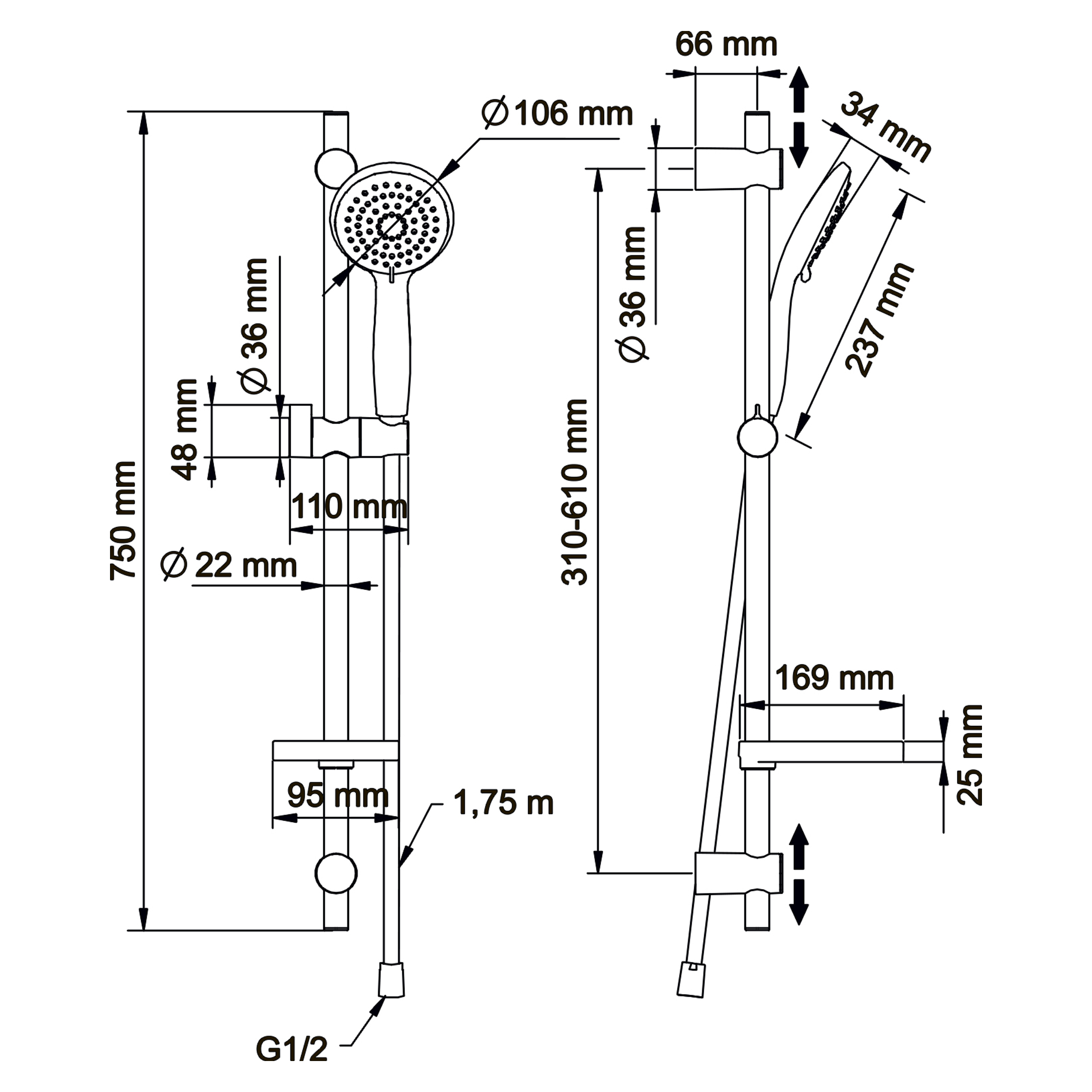 - шланг PVC с металлической структурой и системой против скручивания шланга;