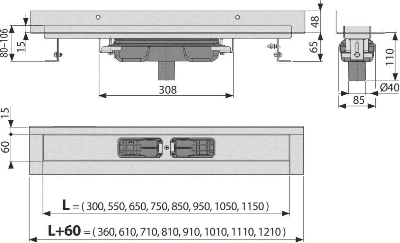 Для цельных решеток, решетки FLOOR под кладку плитки и призматической решетки GAP