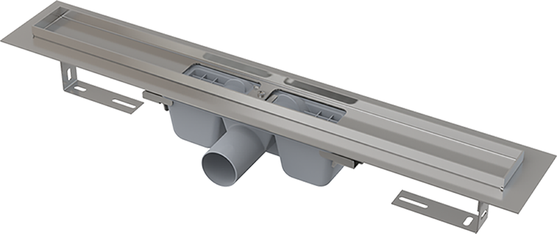 Водоотводящий желоб предназначенный для установки перфорированной решетки. Нержавеющий порог желоба формирует визуальный переход между плиткой и вставленной решеткой. Вода втекает в желоб через края и отверстия решетки. Желоб может быть установлен на открытом участке или к стене душевой поверхности.