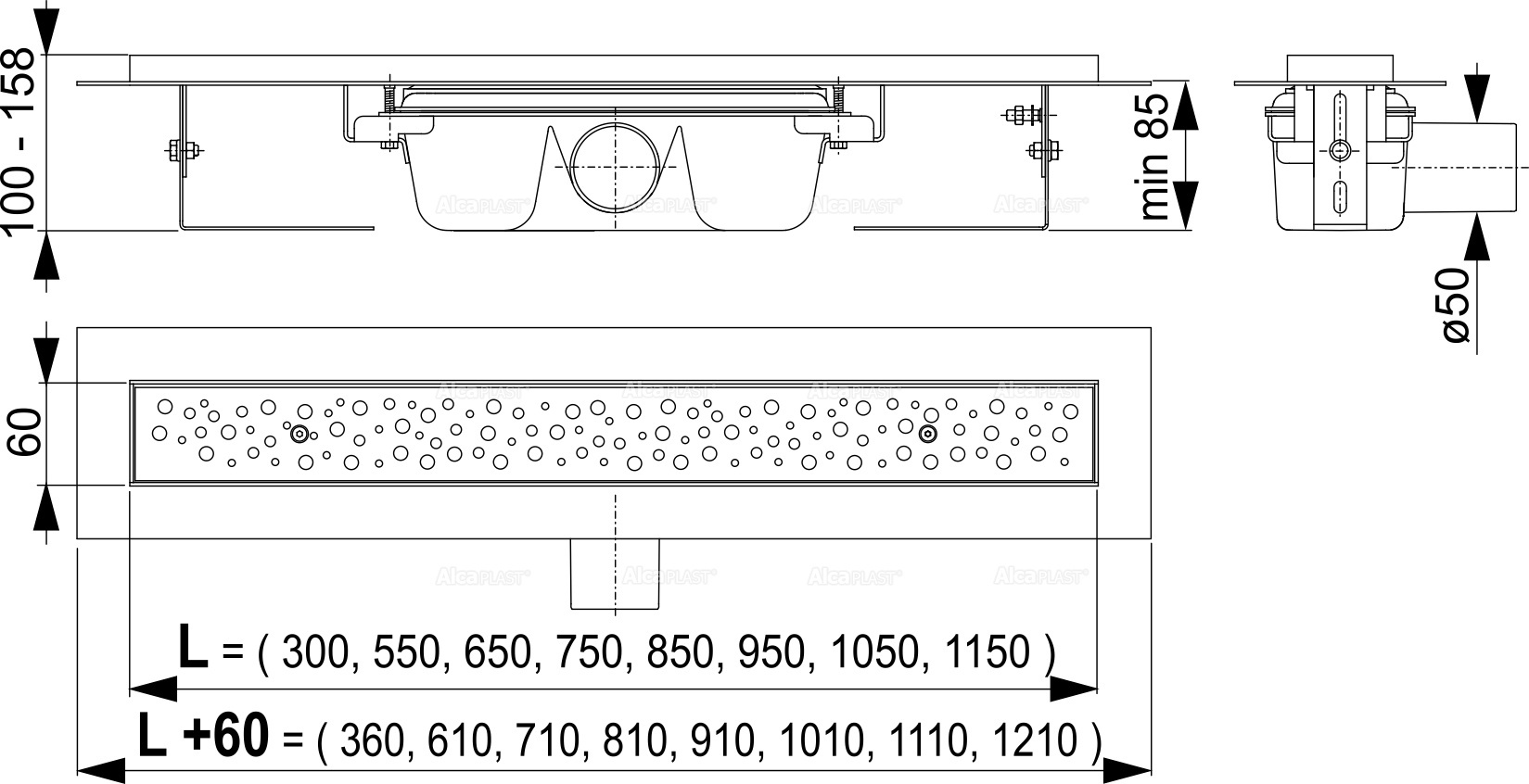 Тип решетки BUBLE прикреплен к лотку с помощью болтов, таким образом, чтобы было невозможно ее демонтировать без инструментов