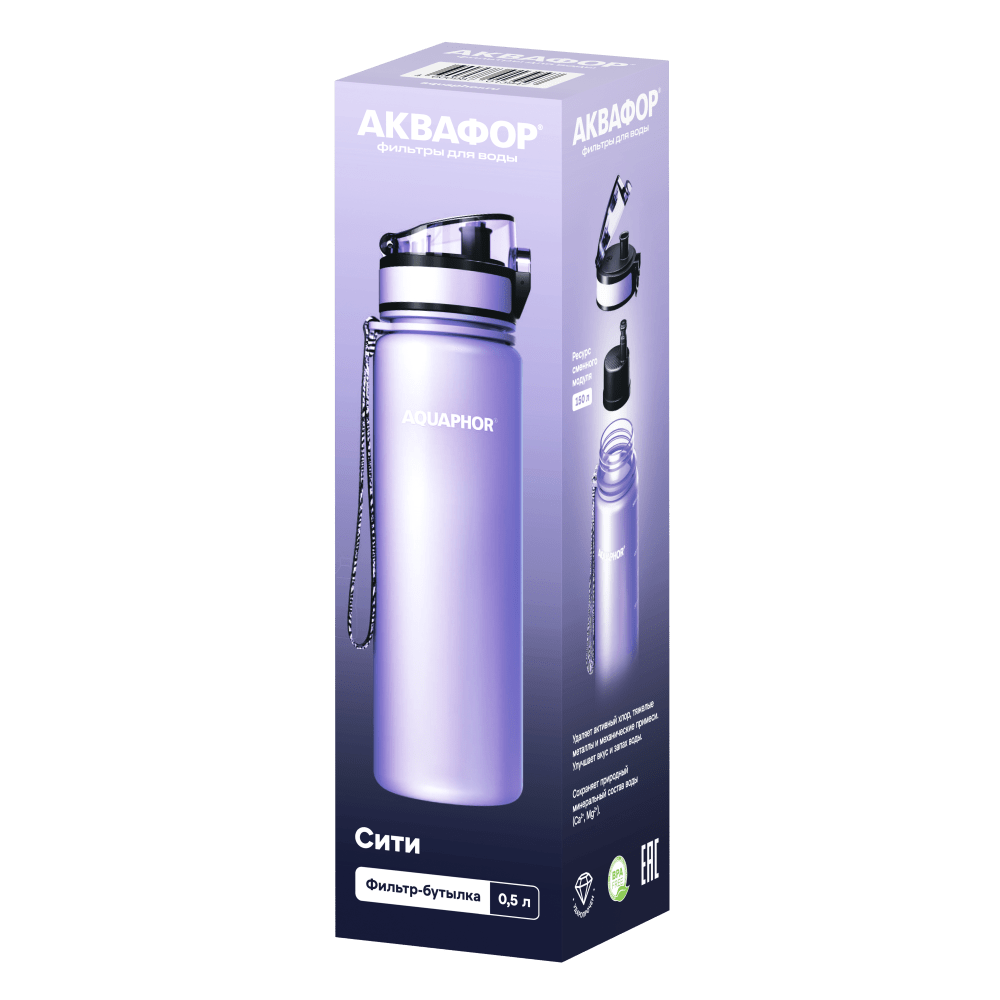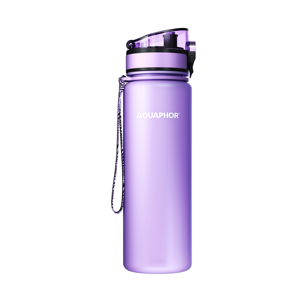 Матовое бархатистое покрытие бутылки приятно на ощупь, широкий ремешок дополнительно фиксирует бутылку во время использования, защитный колпачок не даст воде пролиться в сумке. Объем 0,5 л оптимален для утоления жажды на ходу, новую порцию воды для фильтрации можно добавить, как только это будет необходимо. Удобно для поездок и перелетов.