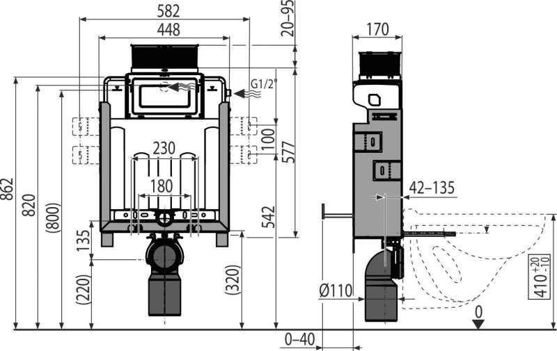 - Для установки подвесного унитаза с интервалом крепления 180 мм или 230 мм