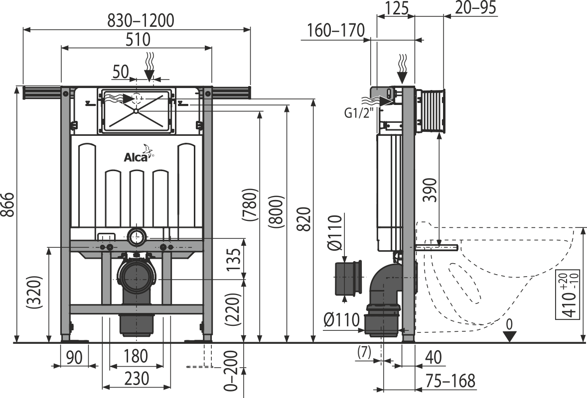 Для установки подвесного унитаза с интервалом крепления 180 мм или 230 мм