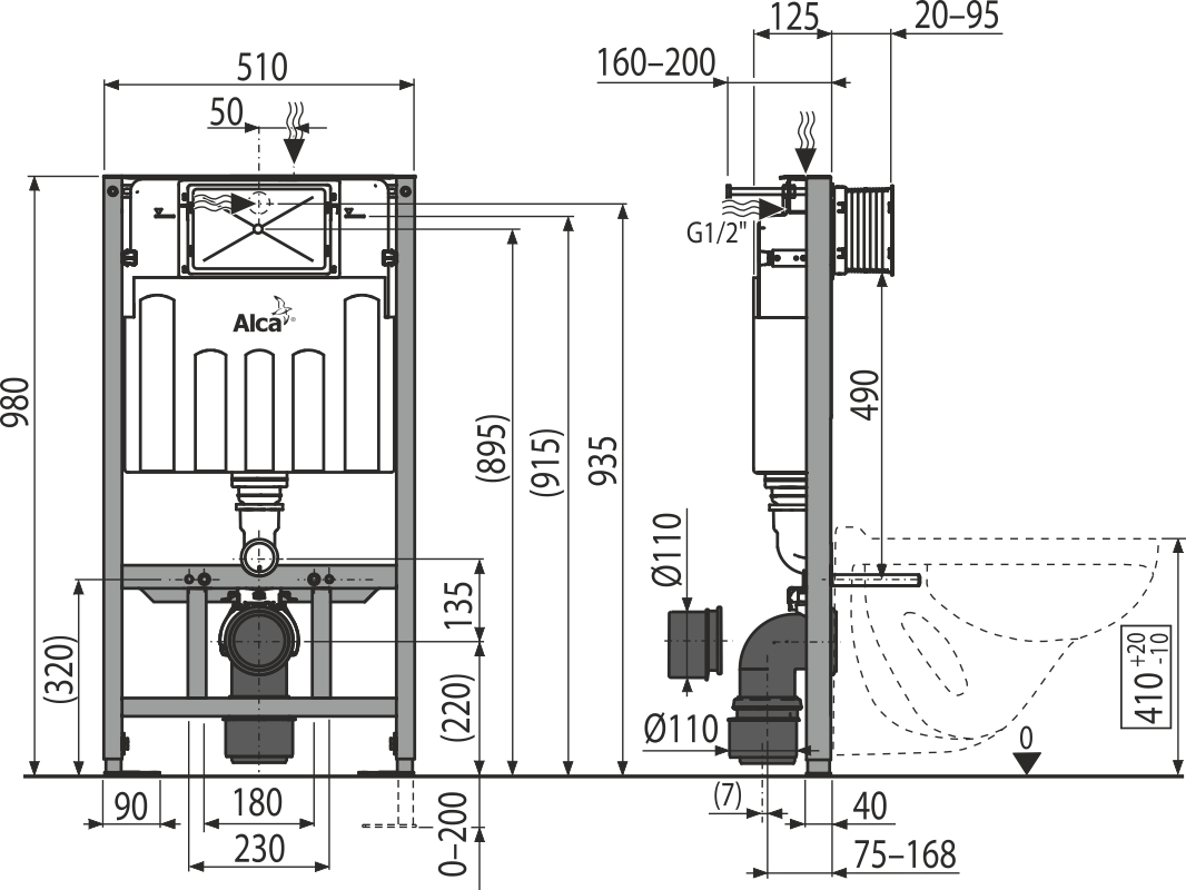Для установки подвесного унитаза с интервалом крепления 180 мм или 230 мм