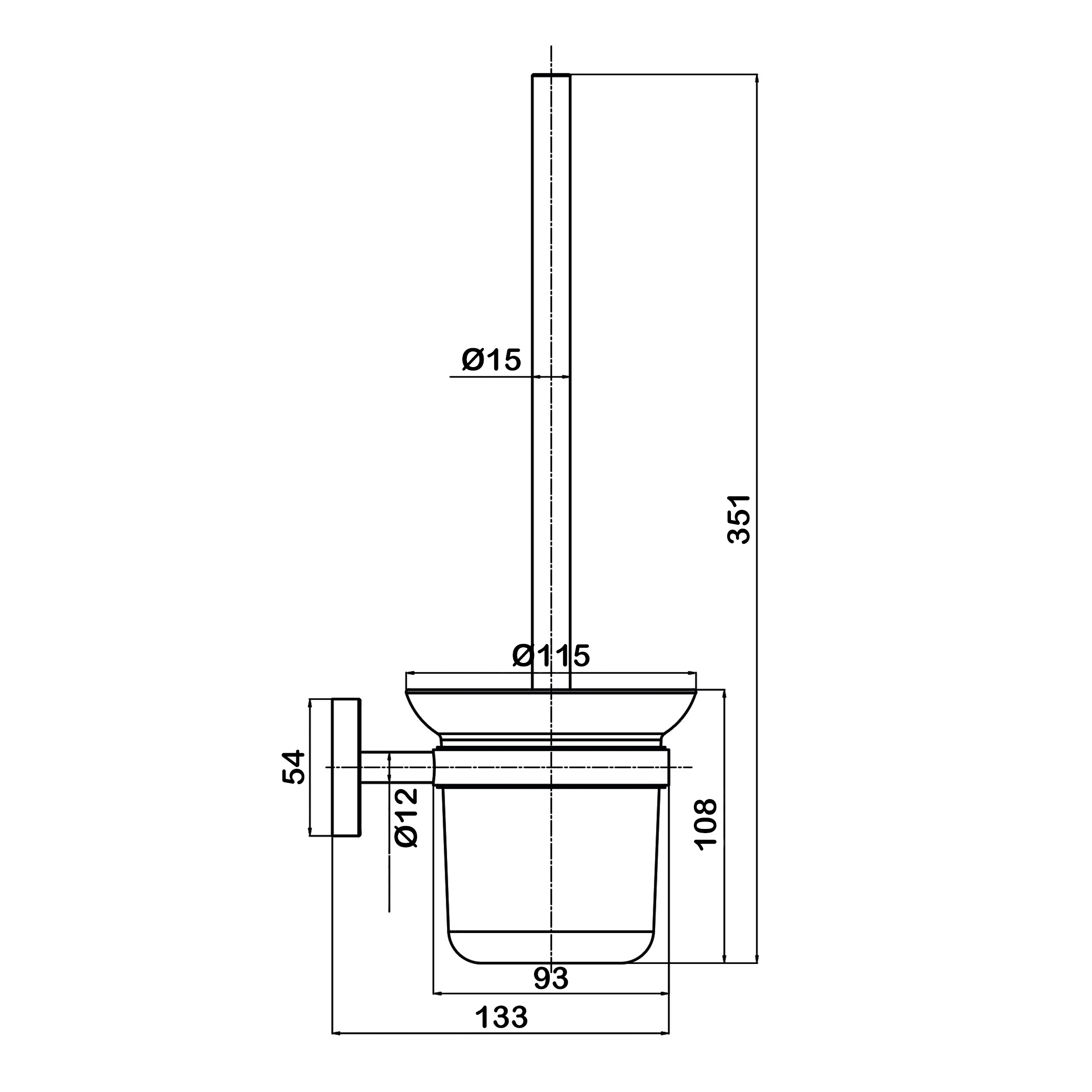 —Хромированный ёршик с чёрной щеткой Swedbe Attribut 9807BB