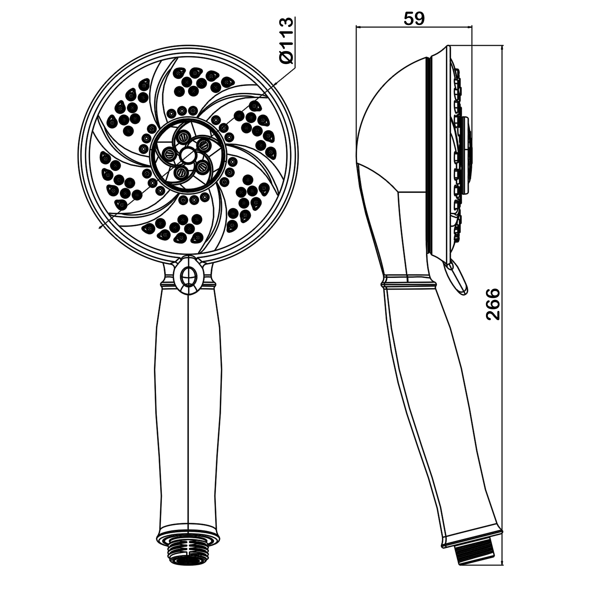Ручной душ. 6 режимов.  Диаметр - 113 мм. Гипоаллергенный ABS пластик. Форсунки из силикона с функцией самоочистки.