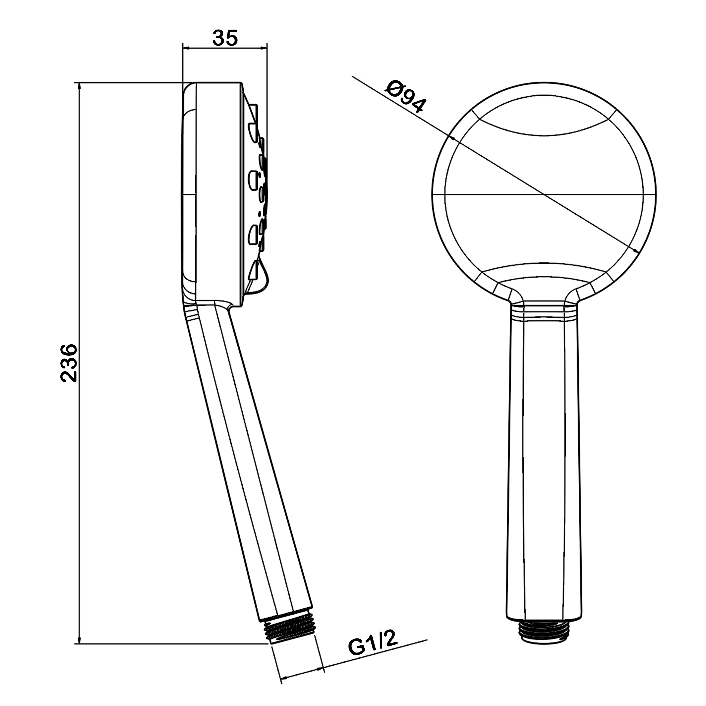 Ручной душ. 5 режимов. Диаметр - 94 мм. Гипоаллергенный ABS пластик.  Форсунки из силикона с функцией самоочистки.