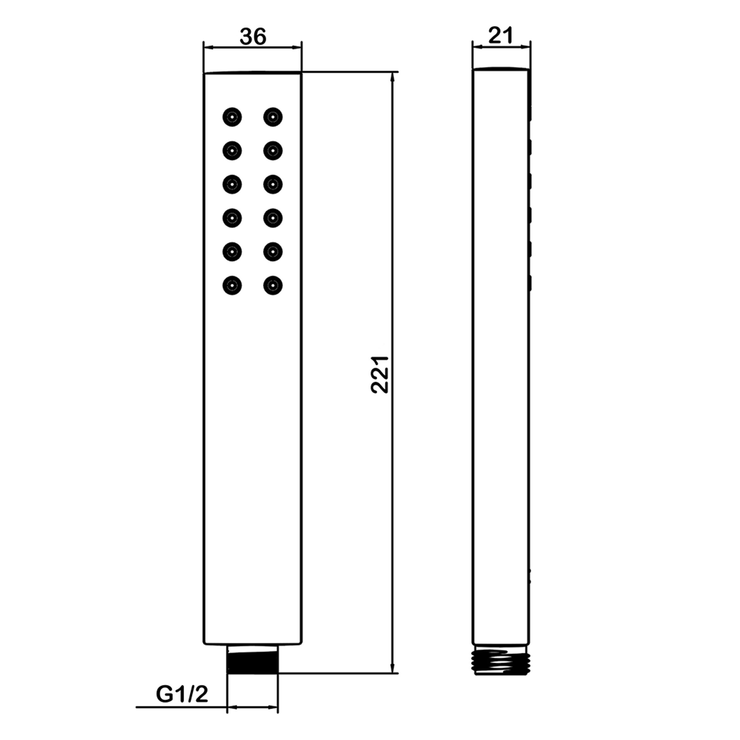 Ручной душ. Режим "Тропик". Размер - 36х221 мм. Гипоаллергенный ABS пластик.