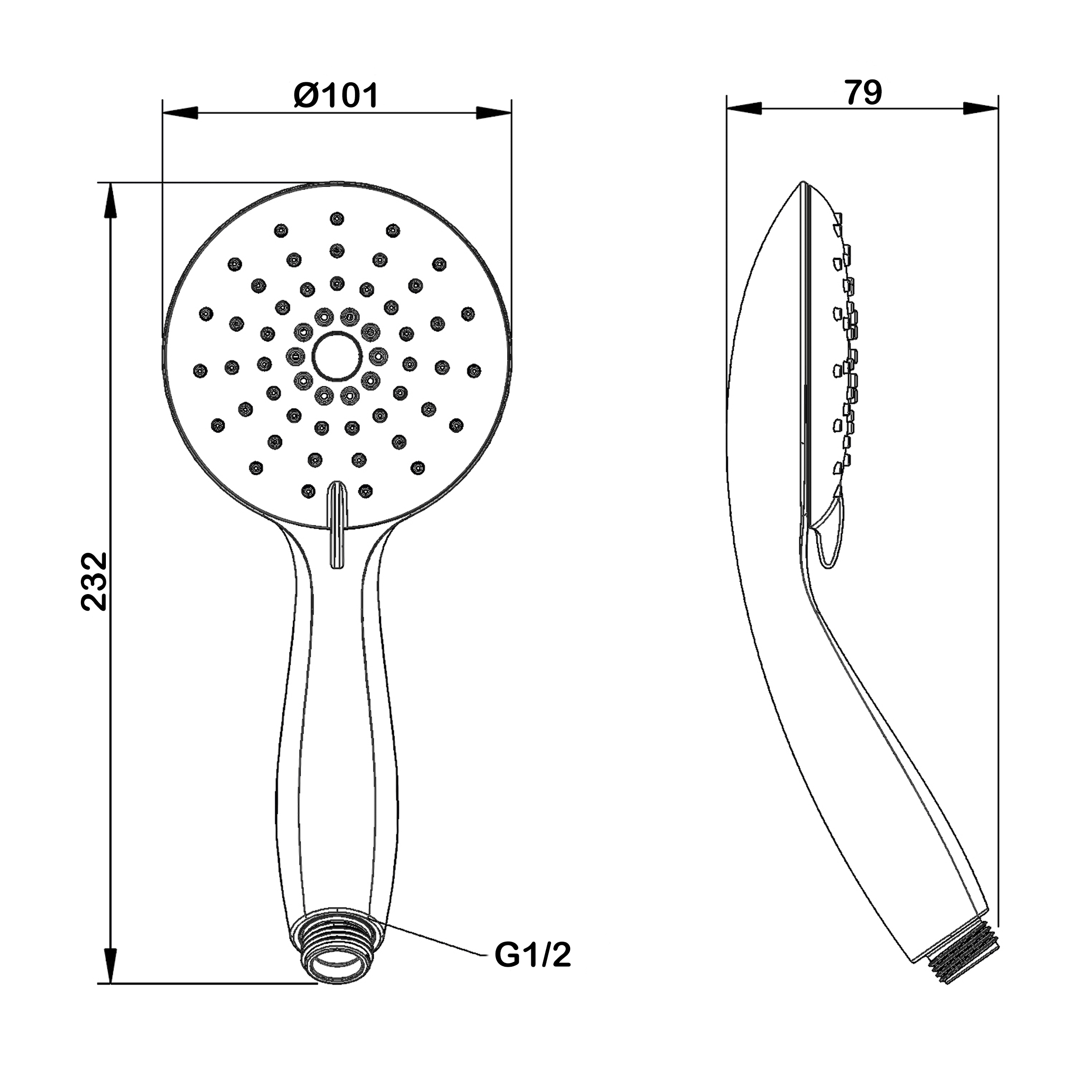 Ручной душ. 3 режима. Диаметр - 101 мм. Гипоаллергенный ABS пластик.