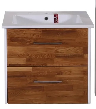 Подвесная тумба с  лаконичным фасадом из натурального массива дуба отлично дополнит современную ванную комнату. Фасады из массива дуба обработаны  влагостойкой пропиткой,  корпус  МДФ окрашен высокоглянцевой эмалью, ящики полного выдвижения с доводчивами, фурнитура от европейских производителей