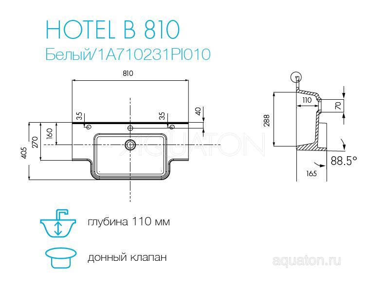 1A710231PI010 Раковина Aquaton Hotel B 81 белая 1A710231PI010