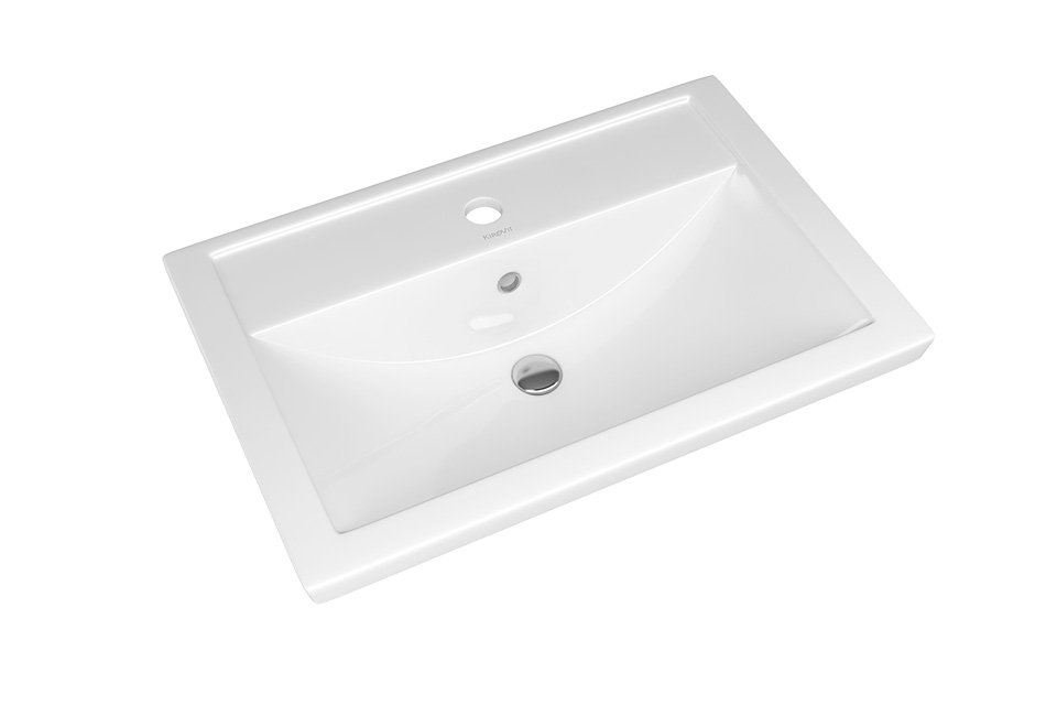 Раковина универсальная с отверстием под перелив, имеет одно отверстие под смеситель, расположение в центре
