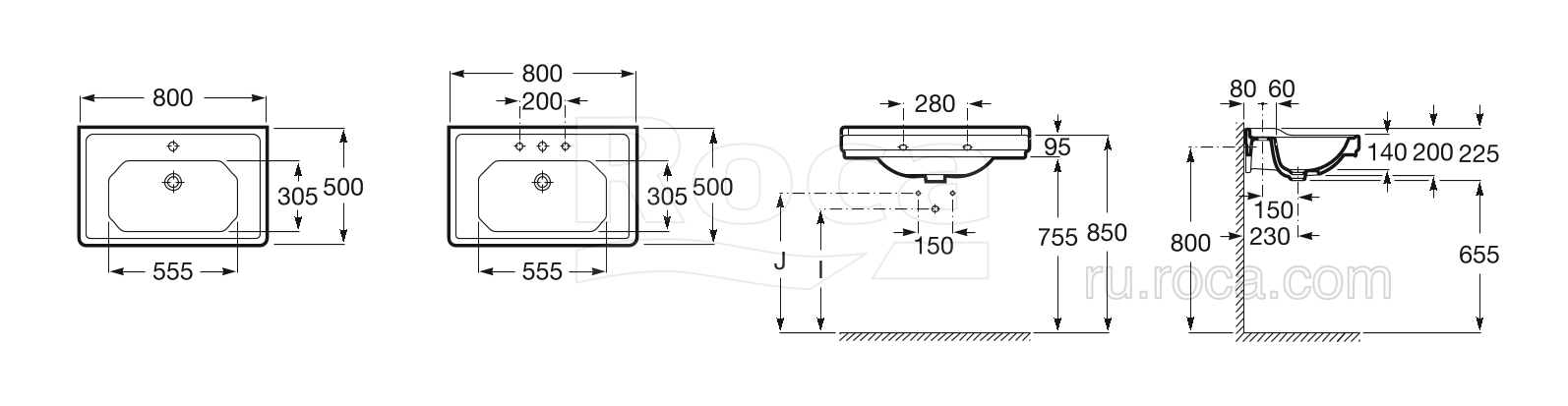 3270A0000 Раковина Roca Carmen 80х50 3270A0000