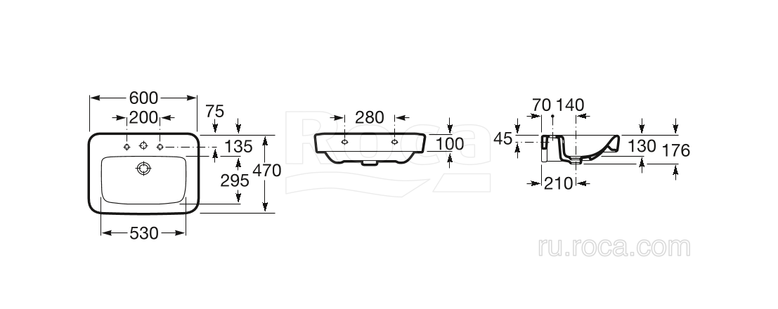 32751B000 Раковина Roca Dama Senso Square 60 32751B000