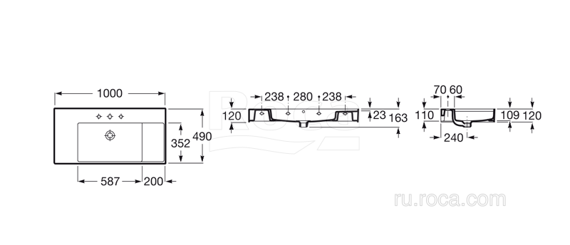 32752A000 Раковина Roca Inspira Square Unik 100x49 32752A000