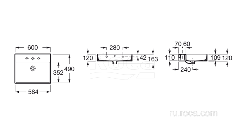 32752C000 Раковина Roca Inspira Square WB Unik 60x49 32752C000
