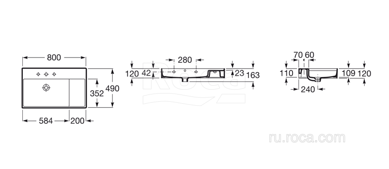 —Раковина Roca Inspira Square WB Unik 80x49 32752B000