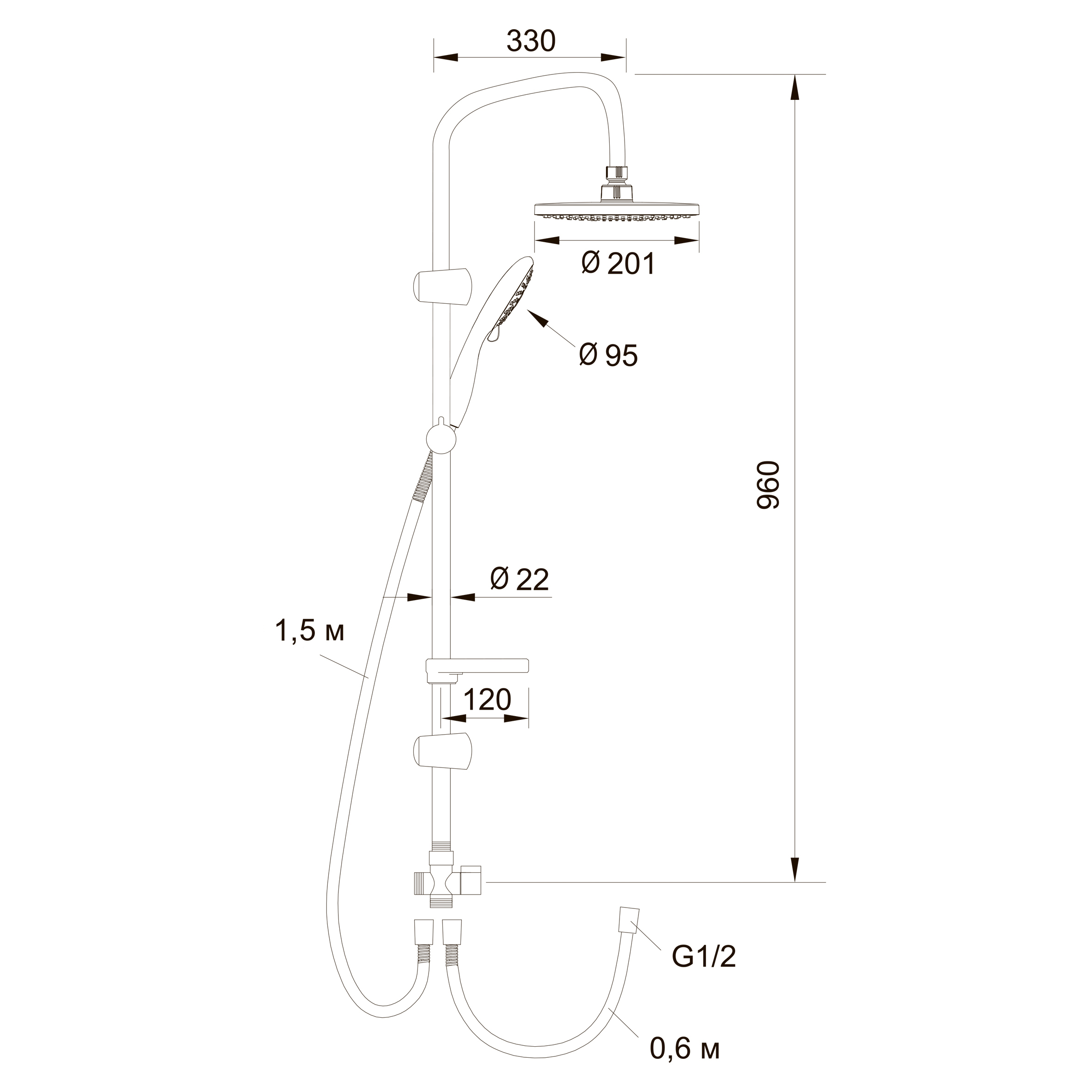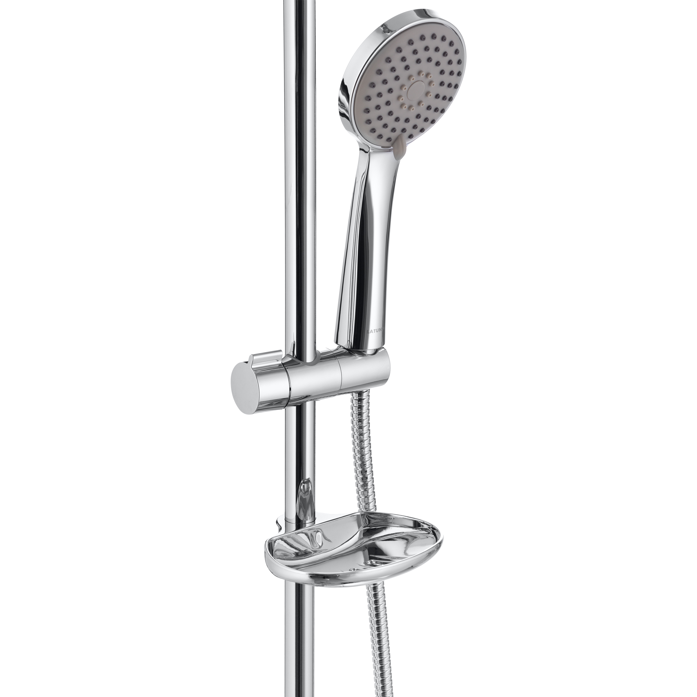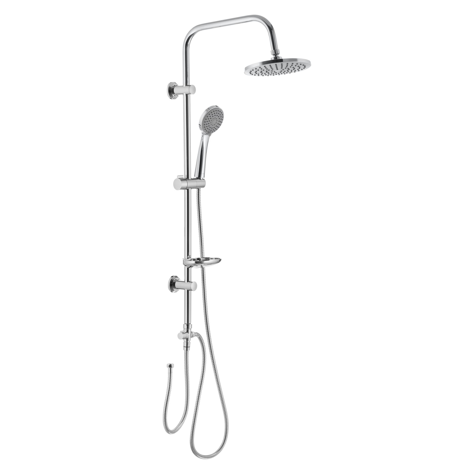штанга, верхняя душевая головка, душевая лейка, шланги, мыльница, держатель для лейки, крепления