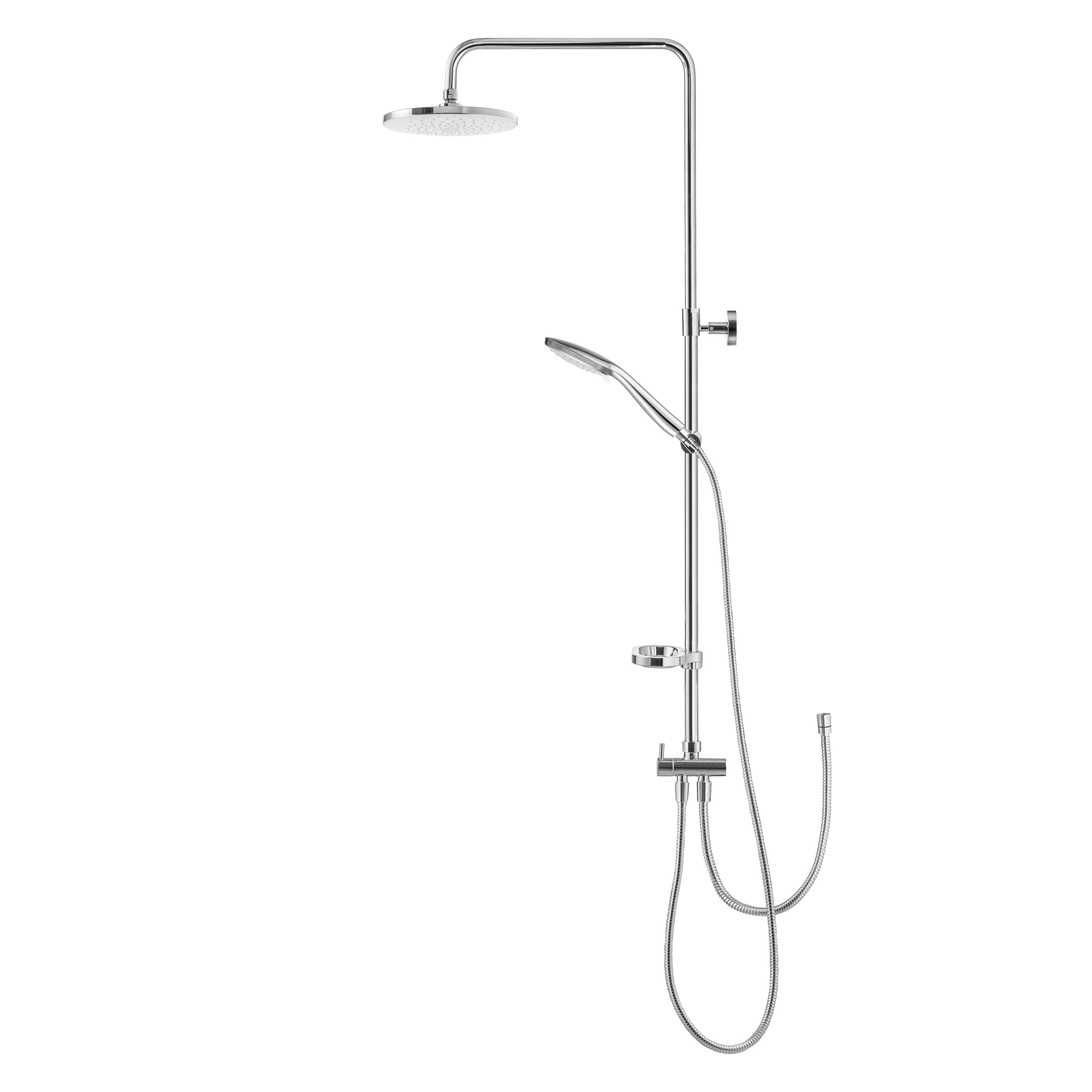 верхний душ, ручной душ, штанга, кронштейн, шланг, мыльница, набор креплений, инструкция