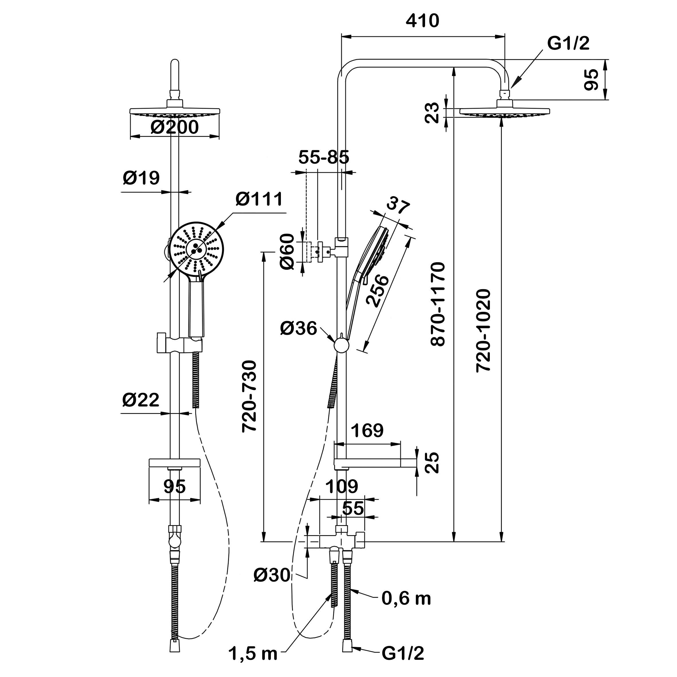 - верхний душ (душевая головка) с регулировкой наклона;