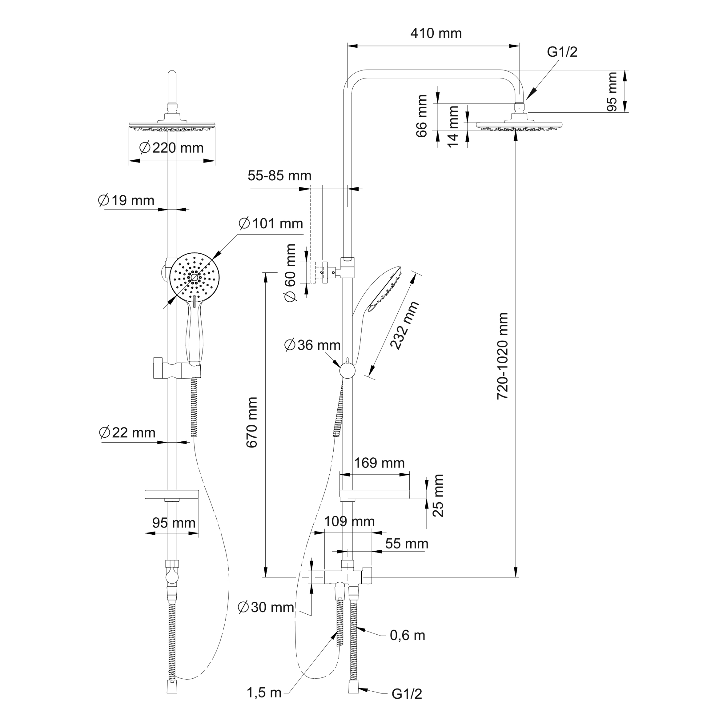 - ручной душ, с трехрежимной лейкой;