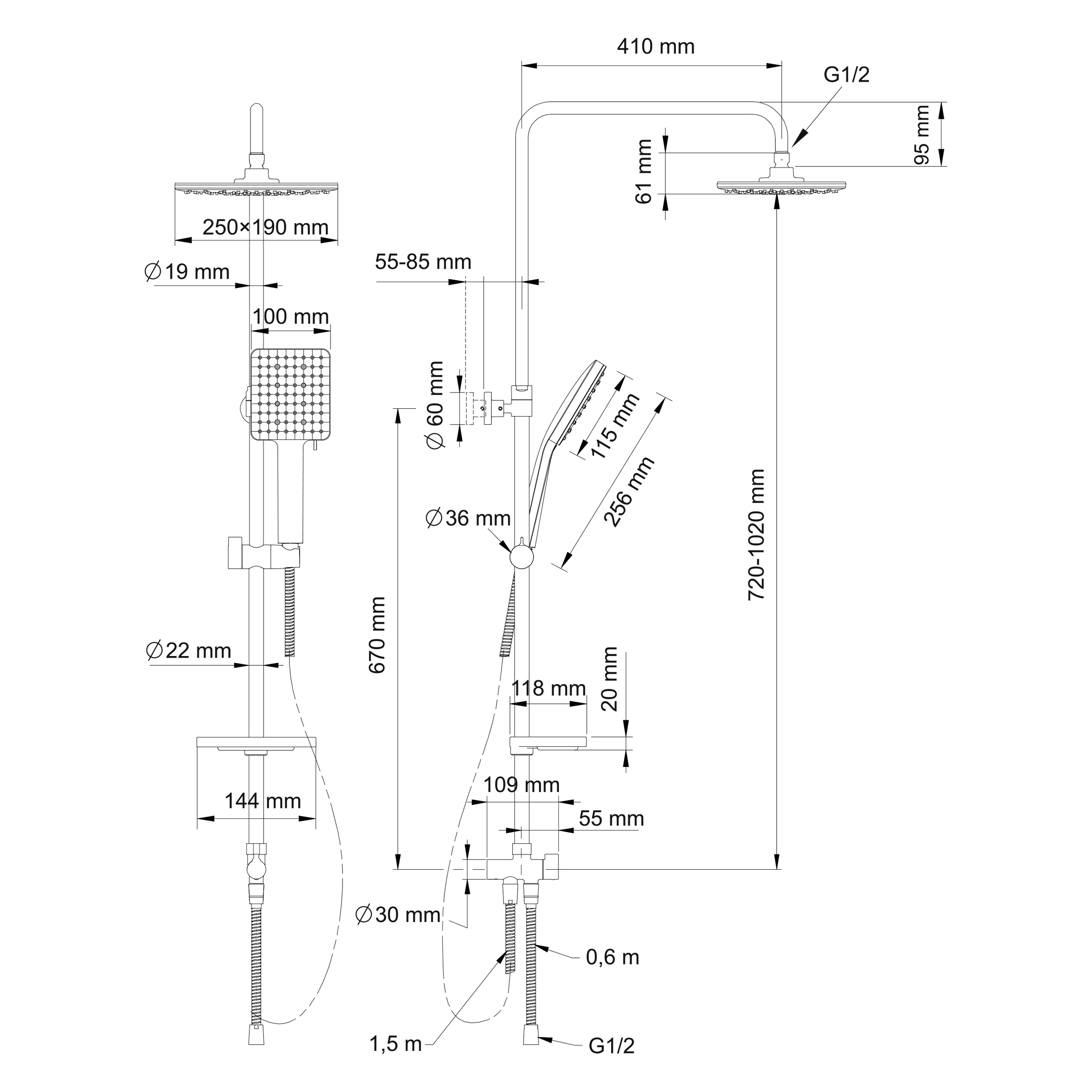- ручной душ, с шестирежимной лейкой;