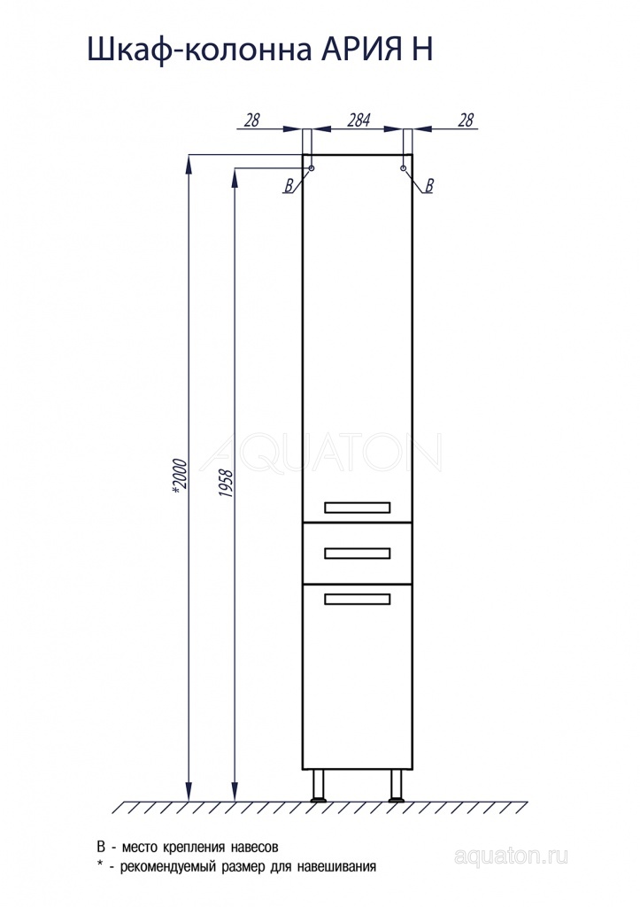Шкаф - колонна Aquaton Ария Н черный глянец 1A124303AA950