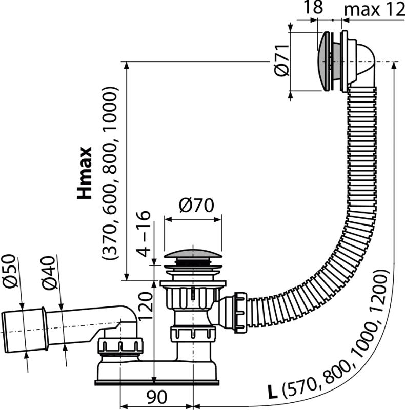 Длина сифона для ванны 57 см