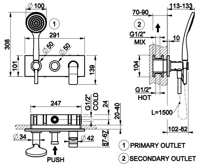 —Смеситель для душа Gessi Rilievo 59140/030 hog