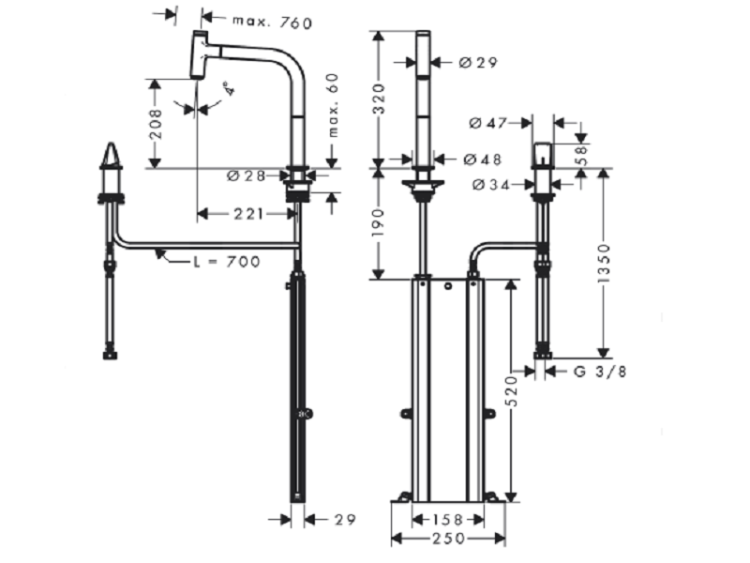 —Смеситель для кухни Hansgrohe Metris Select 73804800 hog1