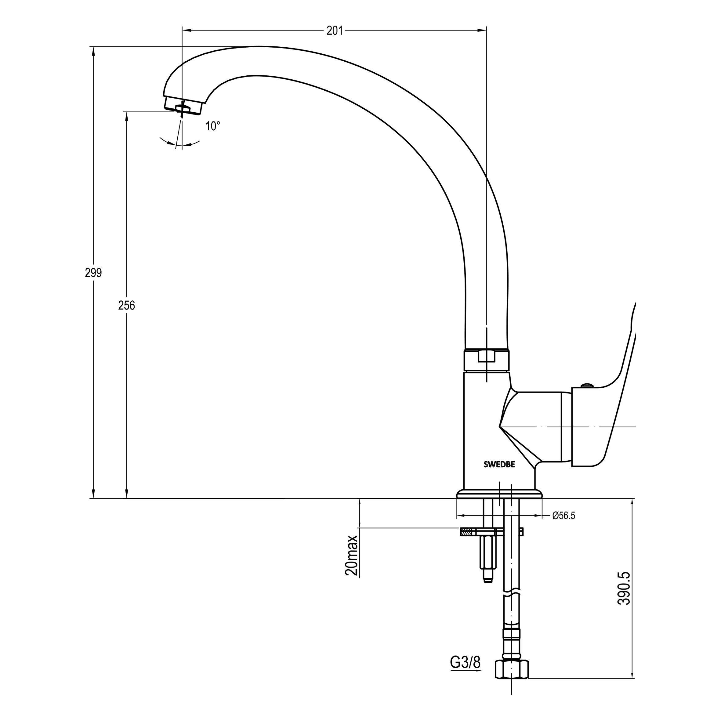 - излив с поворотом 360 градусов;
