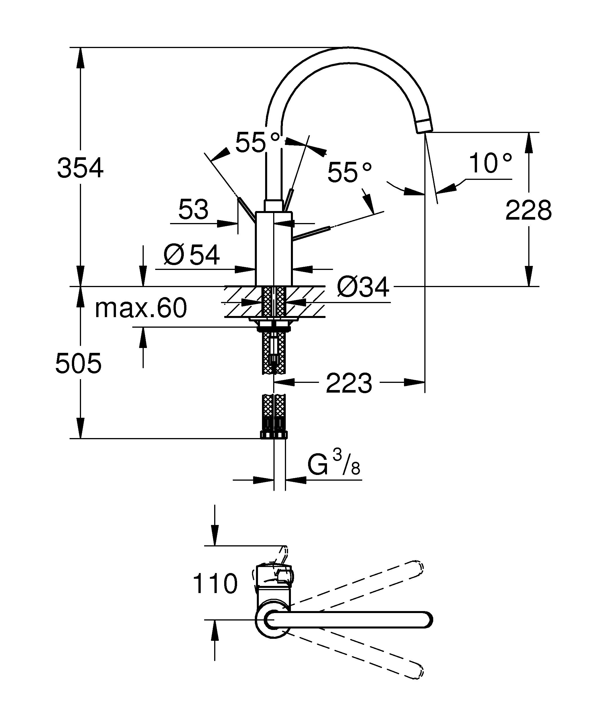32843000 Grohe Eurosmart Cosmopolitan Смеситель для мойки с высоким изливом, 32843000, EAN 4005176874840