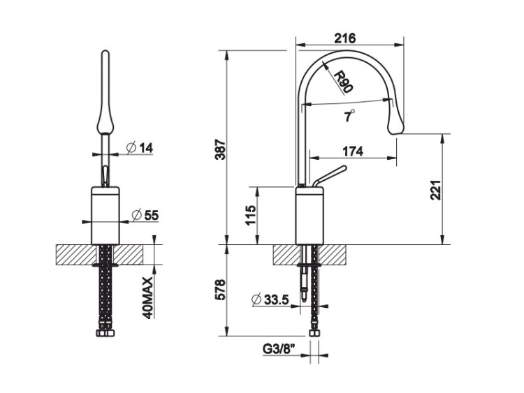 33604/279 Смеситель для раковины Gessi Goссia  33604/279