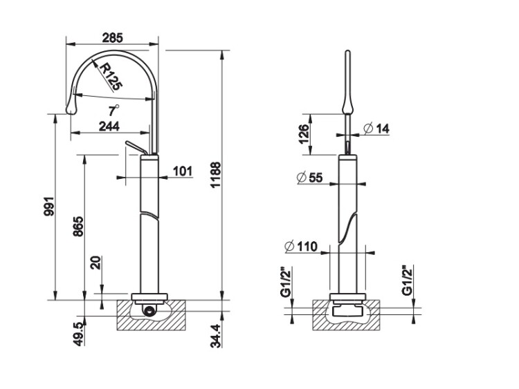 для ванны/душа с длинным изливом