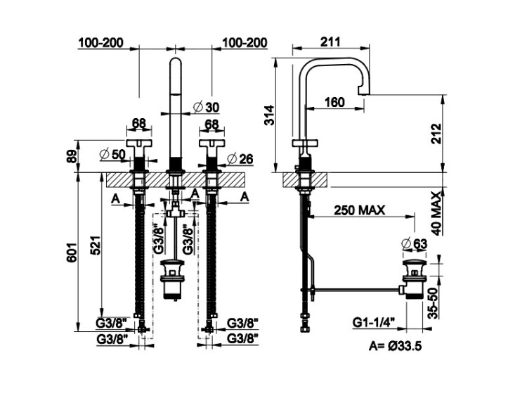58115/246 Смеситель для раковины Gessi Inciso, 58115/246