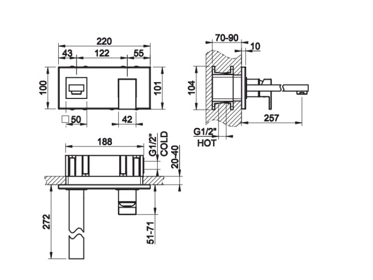 44838/031 Смеситель для раковины Gessi Rettangolo, 44838/031