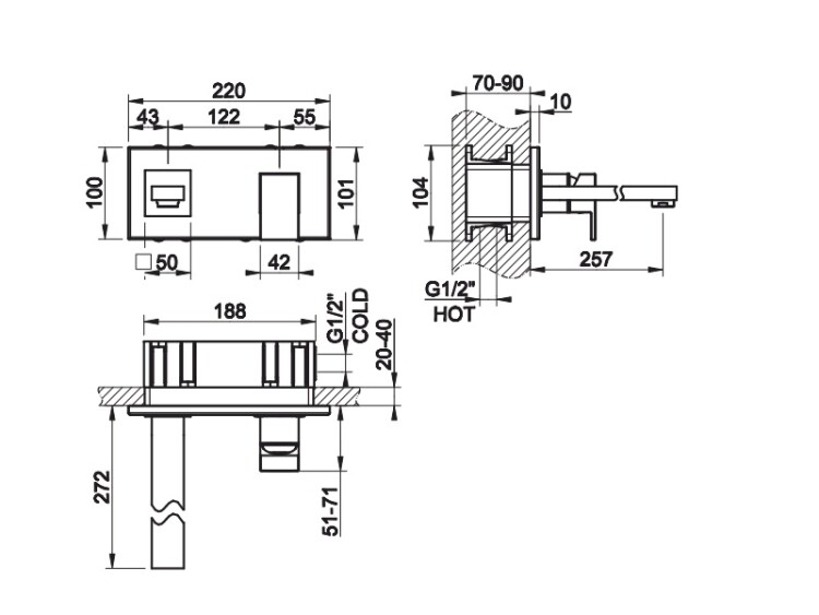 44838/708 Смеситель для раковины Gessi Rettangolo, 44838/708
