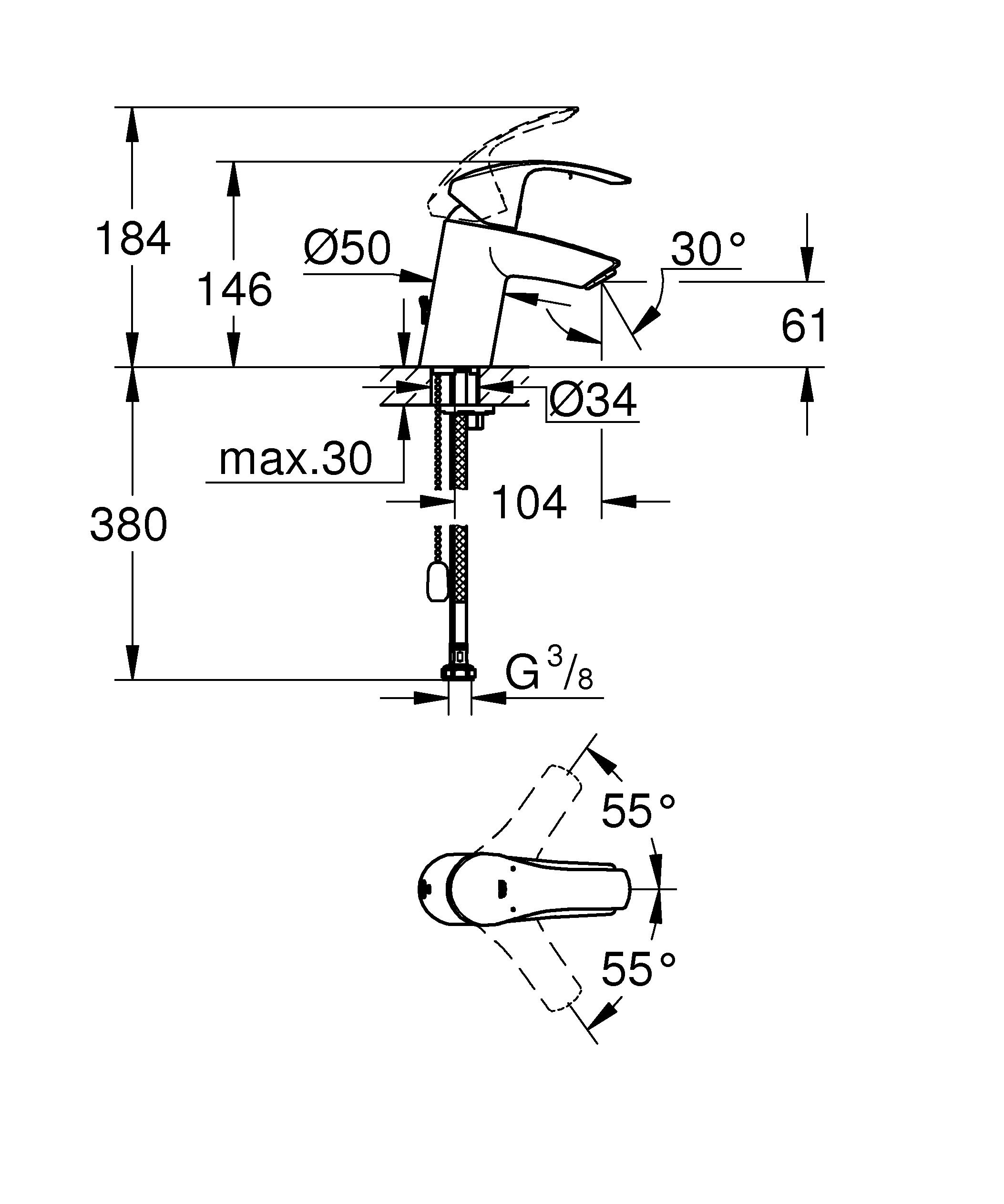 33188002 Grohe ESM 2015 Смес.для раковины с цепочкой, 33188002, EAN 4005176862052