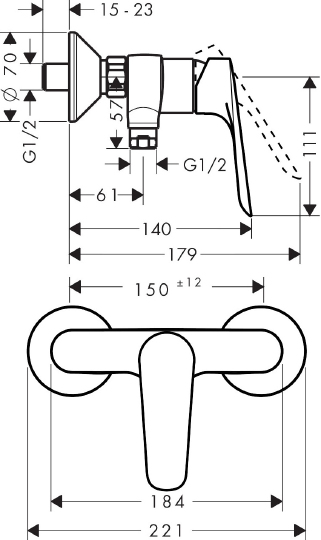 —Смеситель Hansgrohe Logis E для душа 71602000
