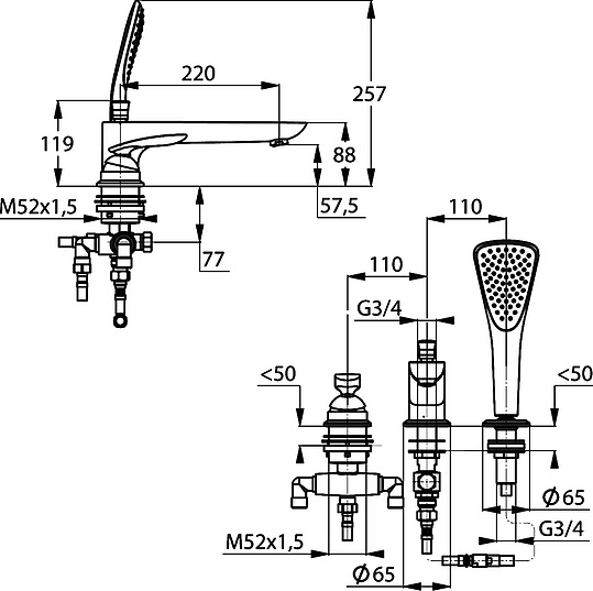 крепления, душевой шланг, душевая лейка, аэратор