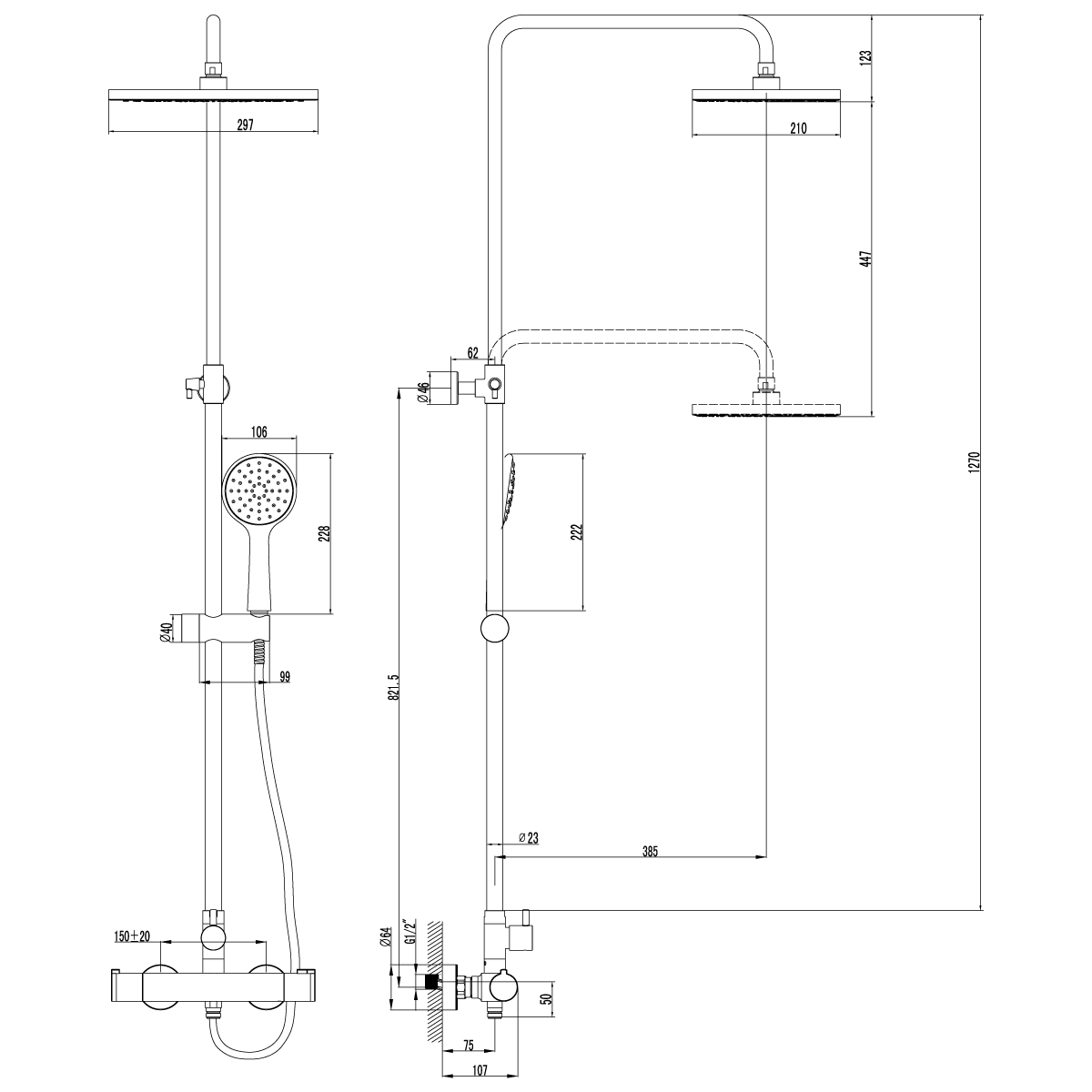 душевая стойка с верхним душем