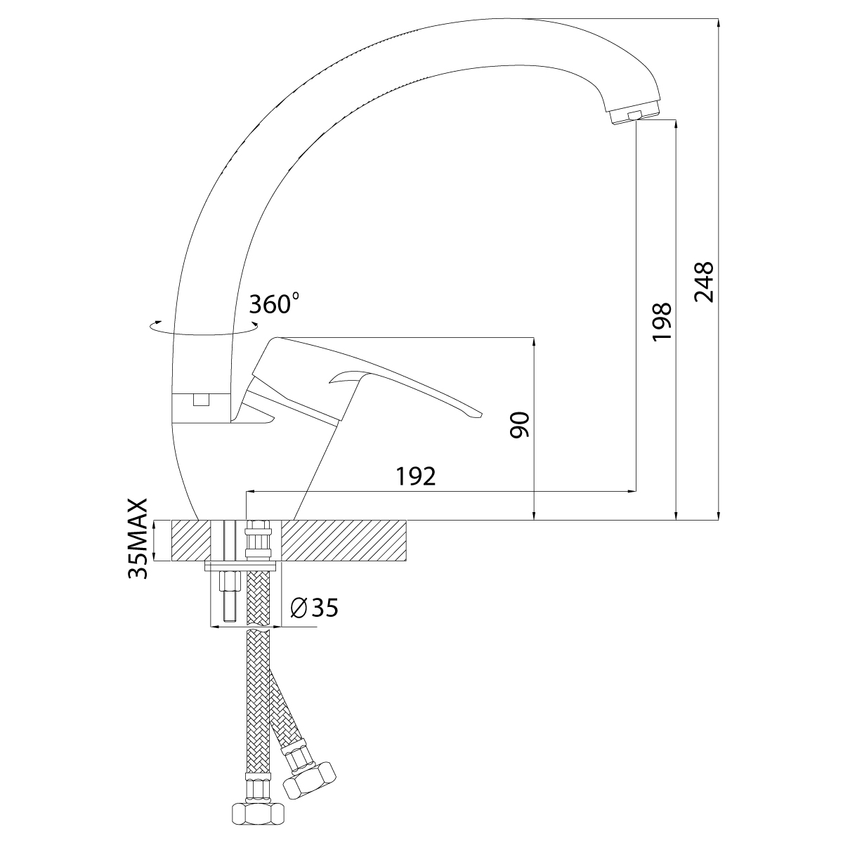 В комплекте: Пластиковый аэратор с функцией легкой очистки. Керамический картридж 40 мм. Гибкая подводка 30 см – 2 шт.. Присоединительная группа для горизонтального крепления. Металлическая рукоятка.