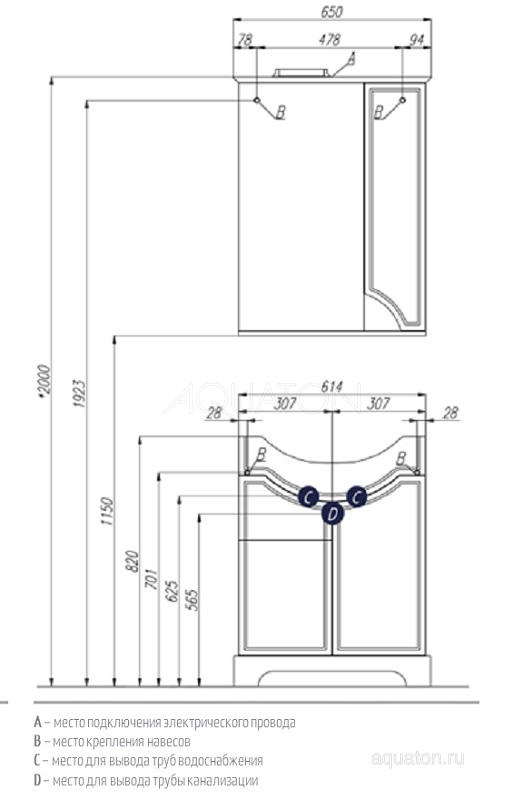 —Тумба под раковину Aquaton Элен 65 белый 1A218901EN010
