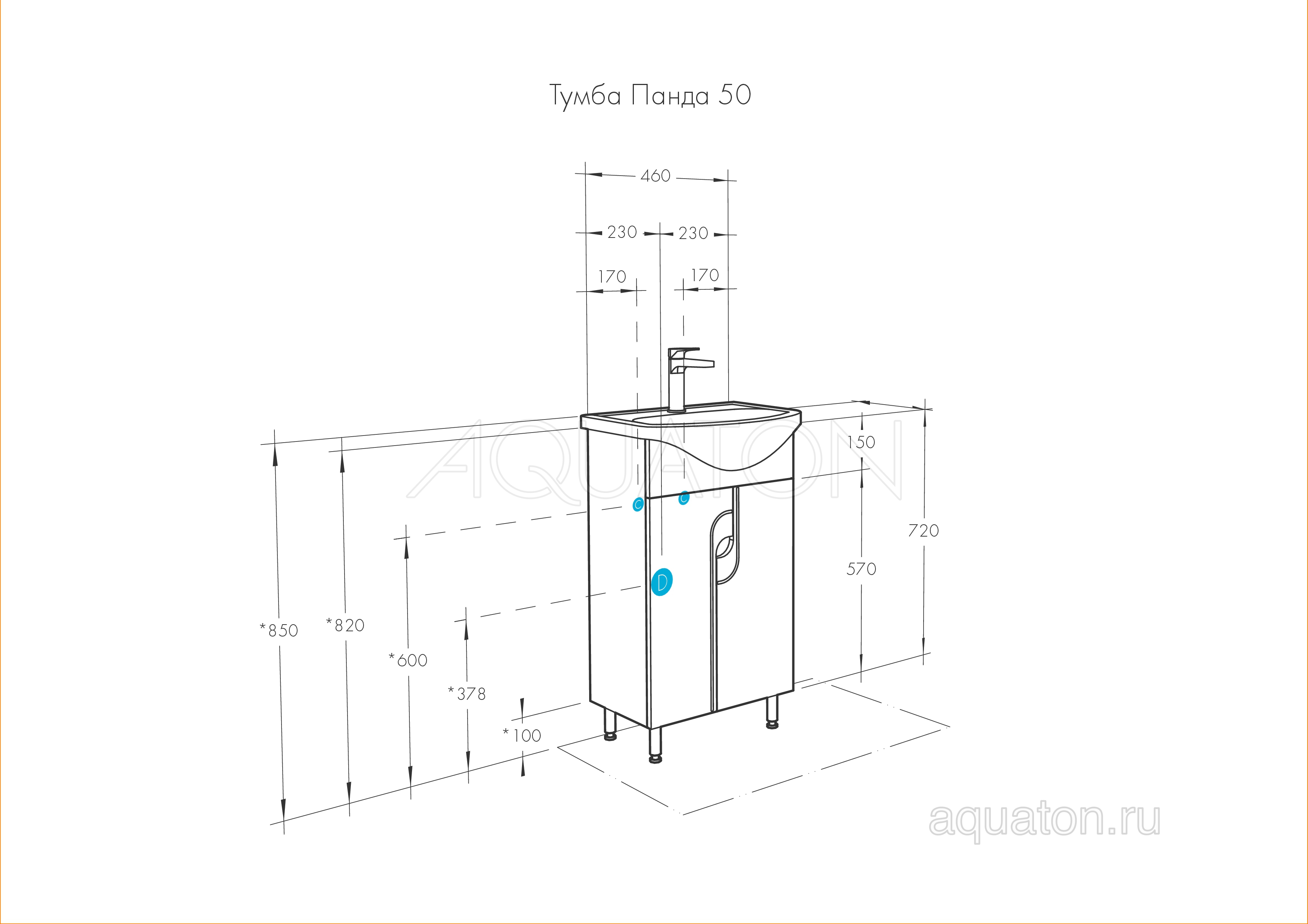 1A053701PD010 Тумба под раковину Aquaton Панда 50 белый 1A053701PD010